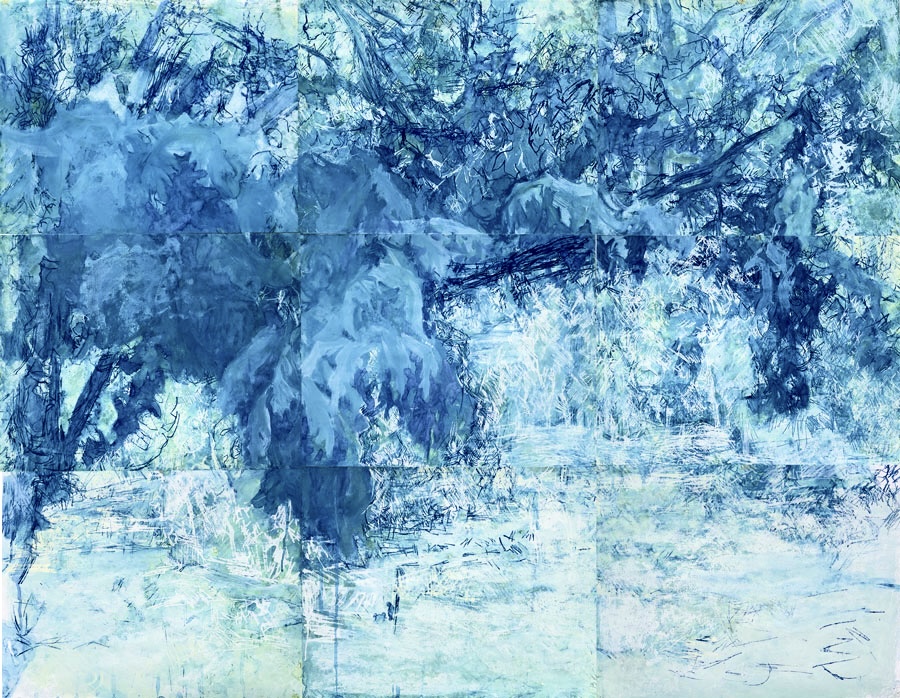 paysage bleuvert technique mixte sur papier 195/150cm 2025