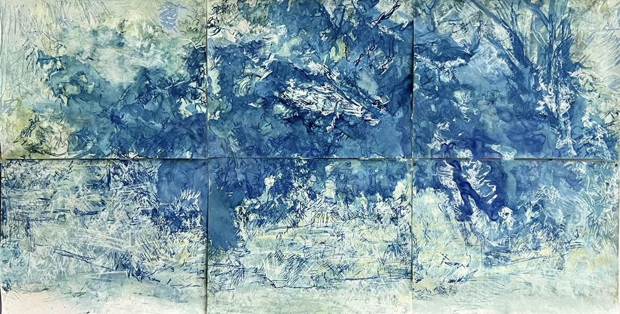 paysage bleuvert technique mixte sur papier 195/150cm 2025